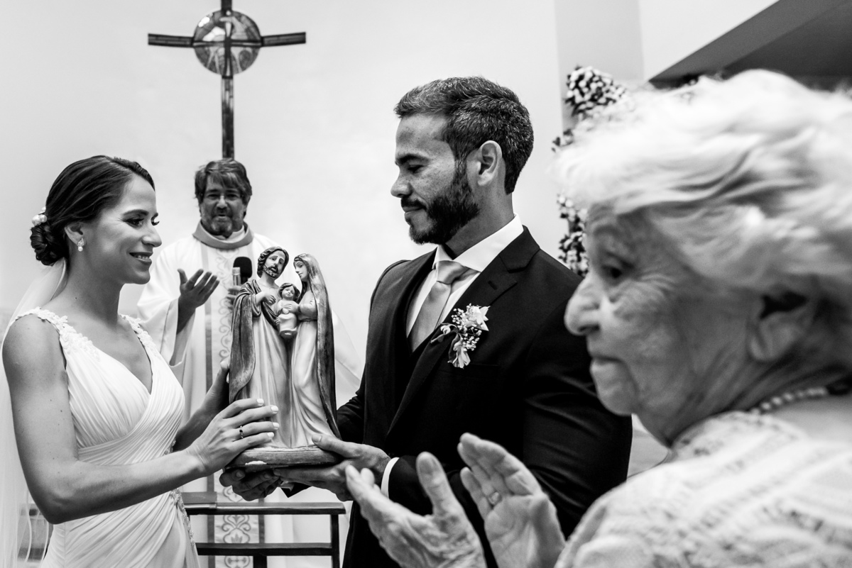 A ideia inicial seria apenas a cerimônia religiosa, seguida por um coquetel pequeno na própria igreja.