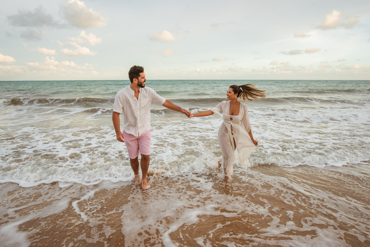 Para uma sessão de fotos na praia, por exemplo, é recomendável usar roupas confortáveis e leves, como vestidos fluidos, saias, bermudas e camisas ou camisetas.
